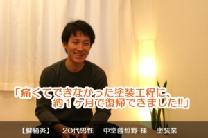 病院の治療って、大体こんなもんだろうとわかって、「このままじゃ治らない、痛みは消えない」と思っていろいろ探して、ネットで検索して辿り着いたのがここなんです。