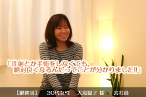 やさしく触っただけで本当に良くなるのかなと思っていましたが、1回施術を受けただけで、すごく楽になってびっくりしました。